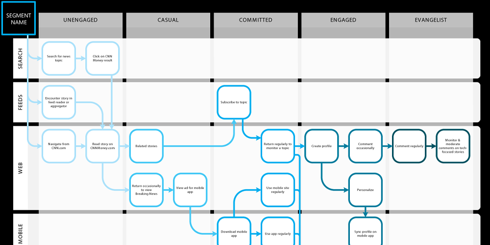 Customer journey diagram, mapping out engagement path for an audience segmentProject details >