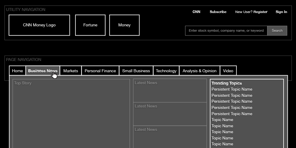 Template wireframe, showing which content would be relevant to particular segmentsProject details >