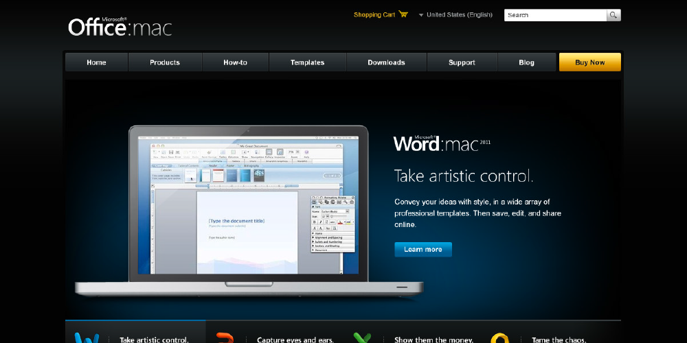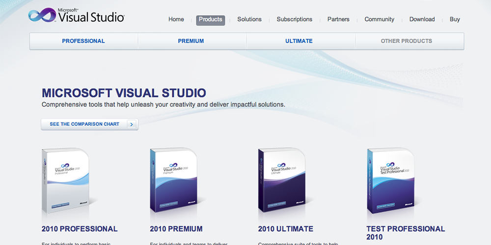 Finished design comp for a product page, prior to launch. Visual design by Kevin Bauer.